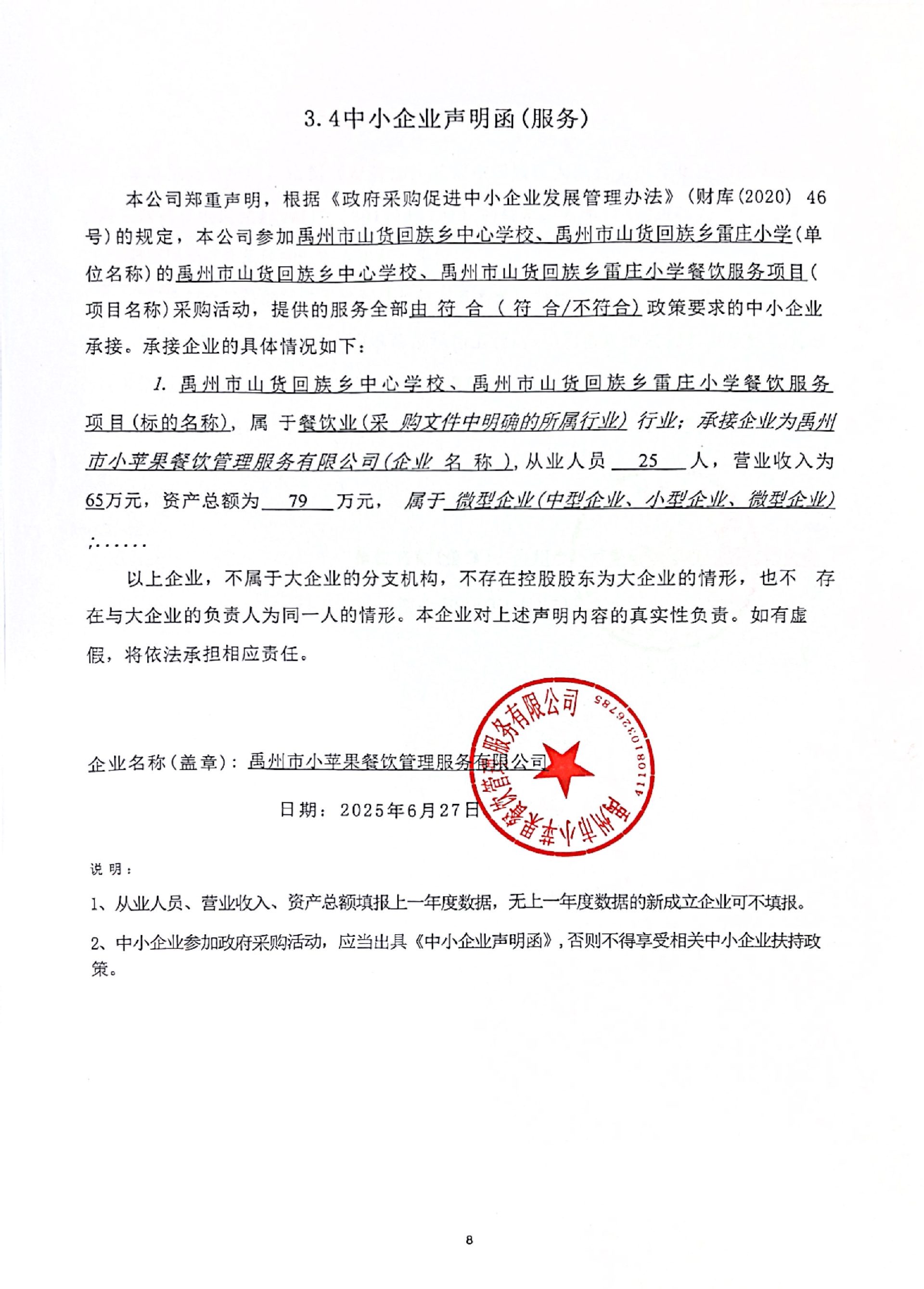 二、采購項目名稱:禹州市山貨回族鄉(xiāng)中心學校、禹州市山貨回族鄉(xiāng)雷莊小學餐飲服務(wù)項目